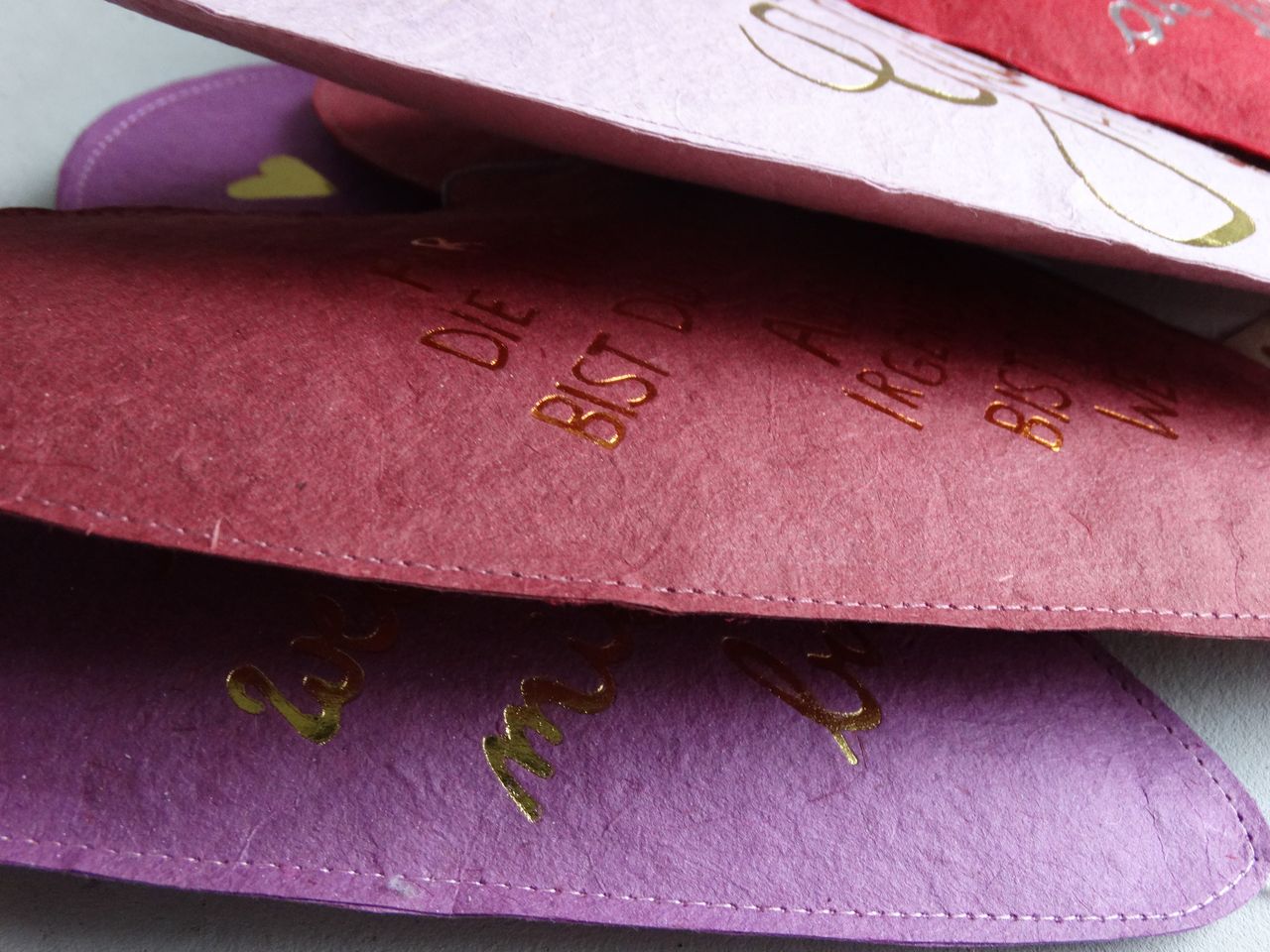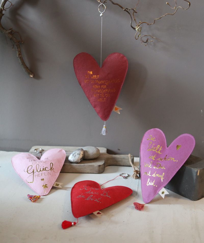 Papierliebe. Diese Herzen aus handgeschöpftem Papier schmücken Türen und Fenster und sind immer ein herzliches Geschenk.